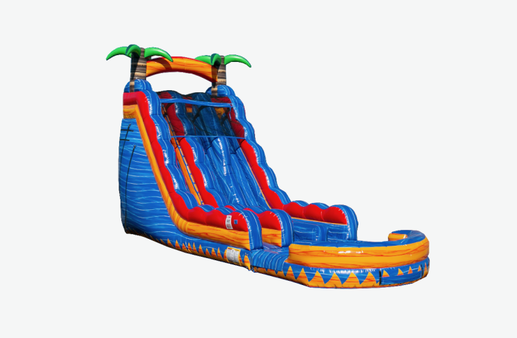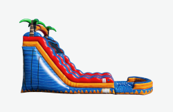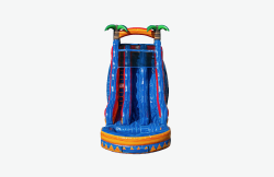 The dual lane 18’ Island Inferno w/ pool is a perfect option for any event where folks want to cool off and have some adrenaline pumping fun. With an eye-catching design and bright color scheme this unit adds a pop of excitement to any event. **Large POOL at bottom**